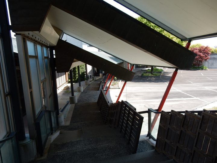 本堂はインドの精舎形式をイメージしたデザインとなっており、かなり大きいです。壁はコンクリート打ち放しです。