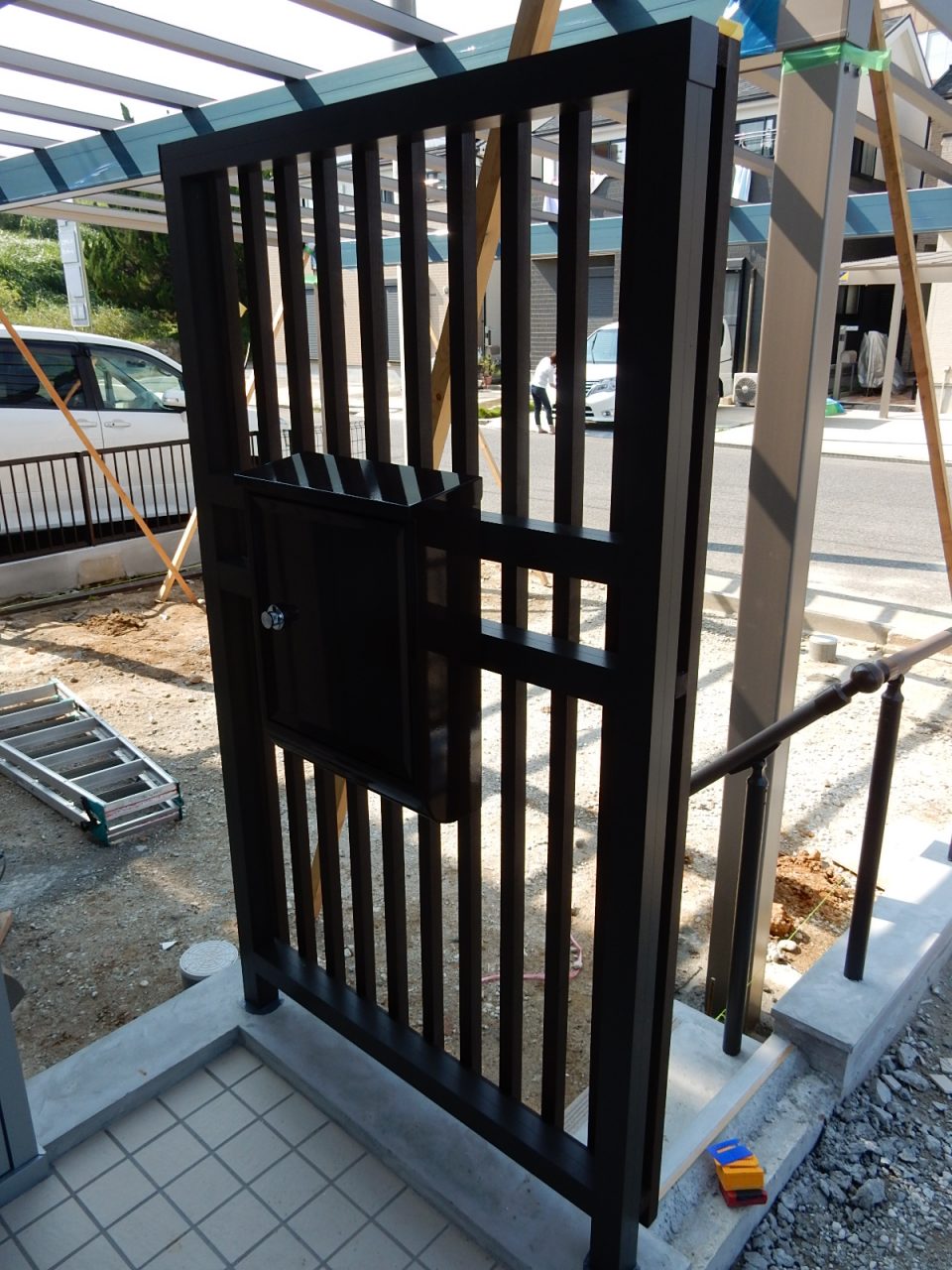 玄関引き戸前に、ポーチ目隠格子が設置されました。