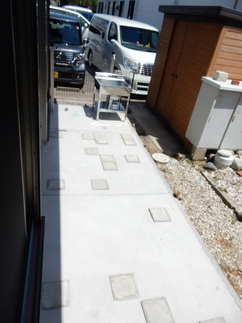 ステンレスの外流しが設置されました。