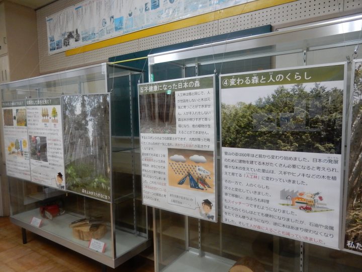 ホタル教室3。ホタルの保護活動や森の役割などの環境についての展示です。