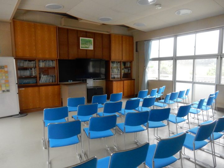 多目的ルーム。セミナーなどを行ったり、ホタルに関する本などがあります。