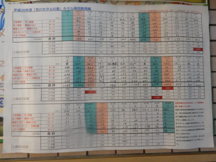 職員の方に聞くと、6月末で飛翔数を計測するのをやめたそうで、今はほとんど飛んでないそうです。