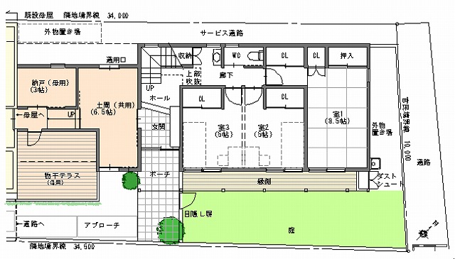 - 母屋と共用の納戸や土間でつなぐが、玄関は別にほしい