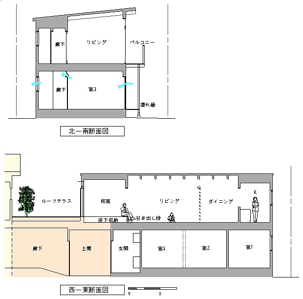 - 母屋とは1階でつながり、2階では離し、南から光を入れます。